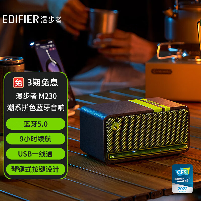 漫步者(EDIFIER)M230 高品质复古蓝牙便携音箱 一体式音响 家庭音响 桌面音响 户外露营 绿魔黑价格:349.00元!