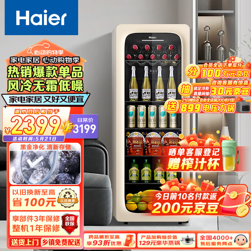 海尔(Haier)150升家用客厅办公室暖藏冰吧元气吧茶叶饮料水果蔬菜保鲜柜小型冰箱象牙米LC-150WLH9EY1以旧换新价格:2799.00元!