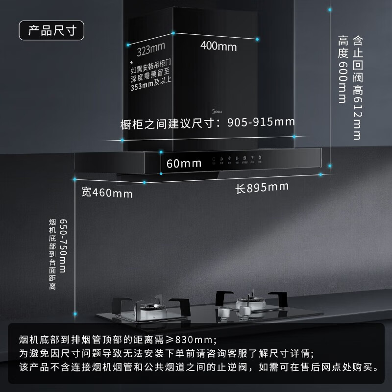 烟机安装尺寸:900±50mm
