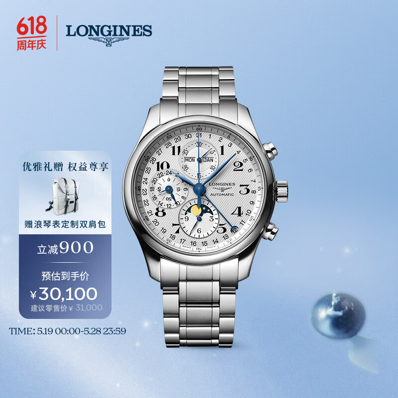 浪琴(LONGINES)瑞士手表 名匠系列 月相机械钢带男表 L27734786价格:30100.00元!