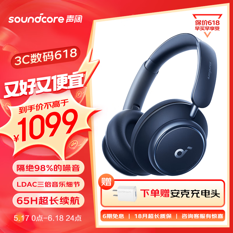 声阔Soundcore Space Q45声阔头戴式无线蓝牙耳机三重动态滤噪适用苹果/华为手机蓝色价格:1099.00元!