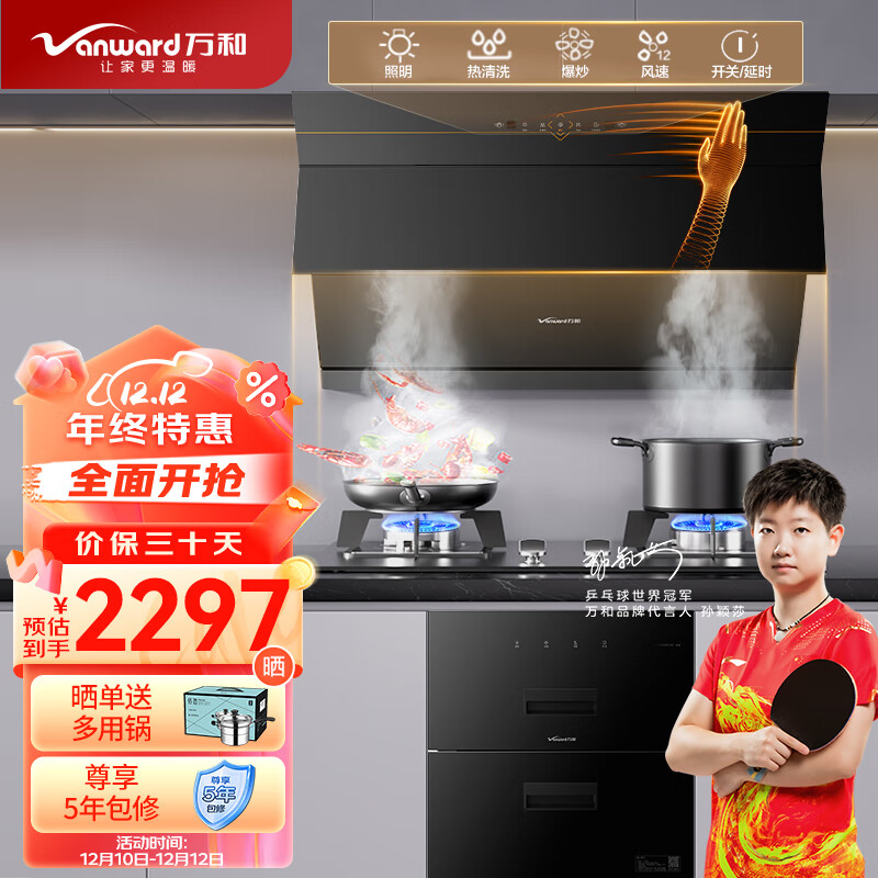 万和(Vanward)烟灶消三件套 侧吸式自动清洗 油烟机燃气灶具消毒柜厨房多件套装 DJ738+B7L51+D5(天然气)价格:2297.00元!