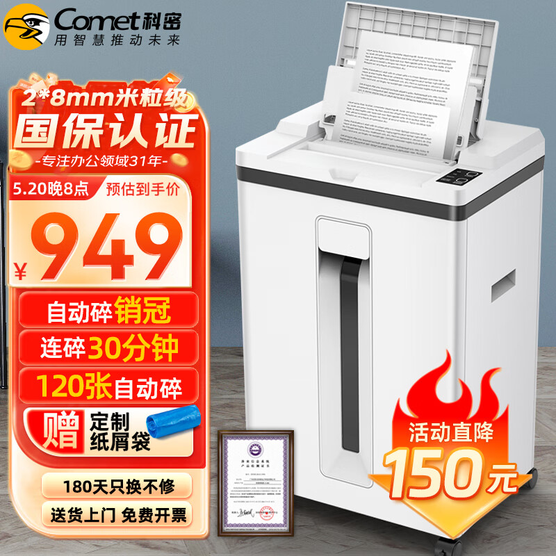 科密(comet)全自动碎纸机 二级保密认证 办公商用大型粉碎机(全自动120张 持续30分钟25L )Z-600价格:949.05元!