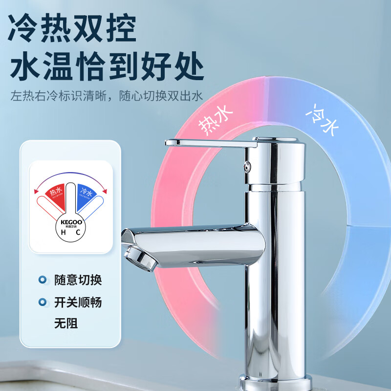 科固(KEGOO)水龙头洗脸盆卫生间面盆冷热 浴室柜台盆洗手池龙头不锈钢K1013价格:85.20元!
