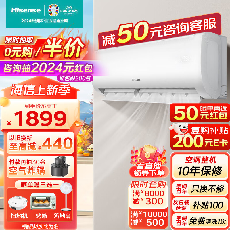 海信空调1.5匹挂机速冷热新三级能效急速冷暖APP智能变频防直吹壁挂式卧室空调KFR-35GW/E370-X3价格:1899.00元!