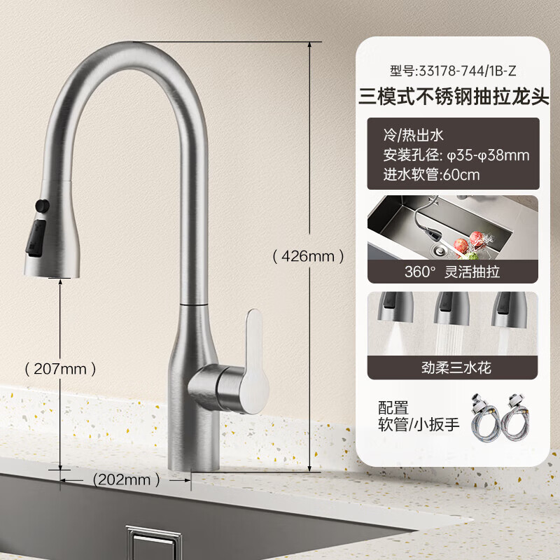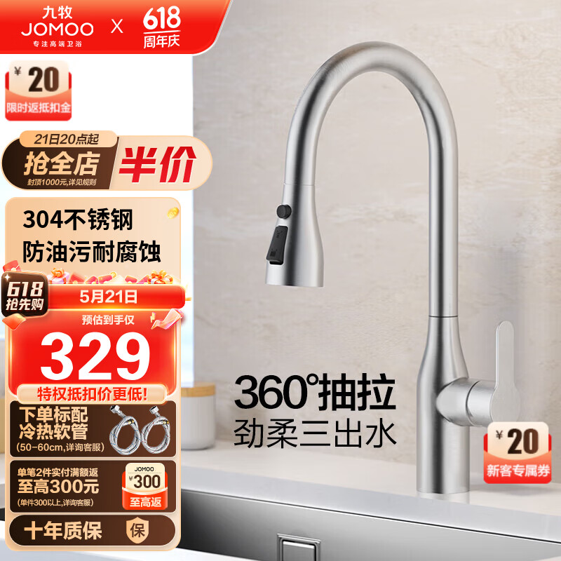 九牧厨房水龙头冷热三功能抽拉304不锈钢水槽龙头33178-744/7B-Z价格:379.00元!