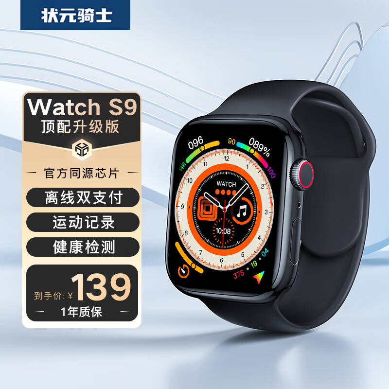 状元骑士智能手表s9promax顶配运动WatchS9防水蓝牙通话电子手表男女通用nfc心率监测高清屏送礼物黑色价格:219.00元!