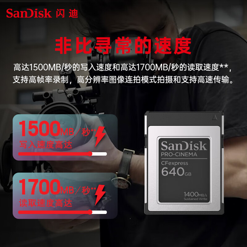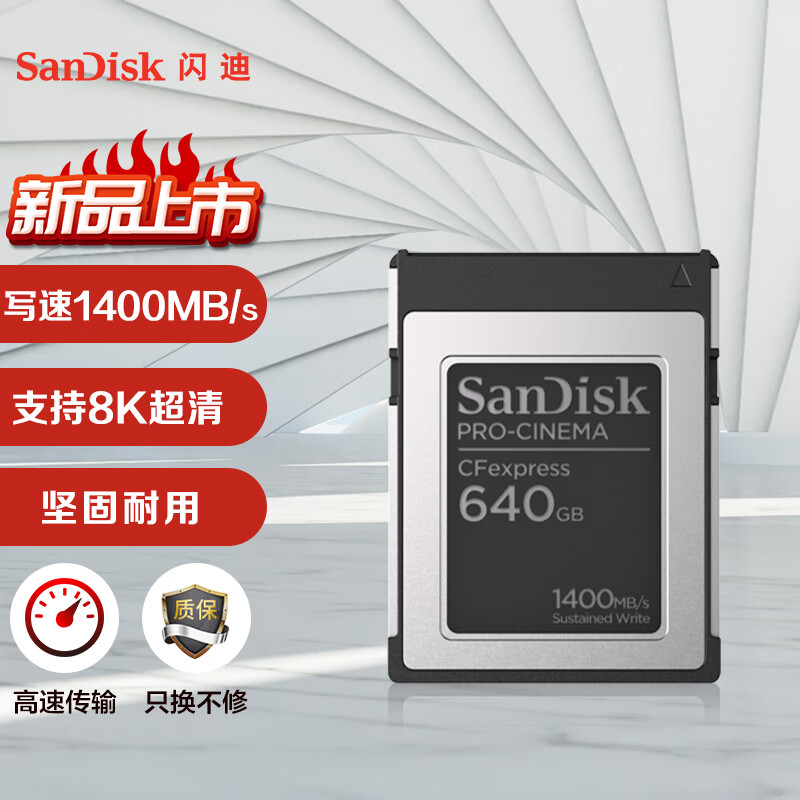 闪迪(SanDisk)640GB CFexpress Type B内存卡 影院级8K视频 读速1700MB/s 持续写速1400MB/s专业摄影存储卡价格:8999.00元!