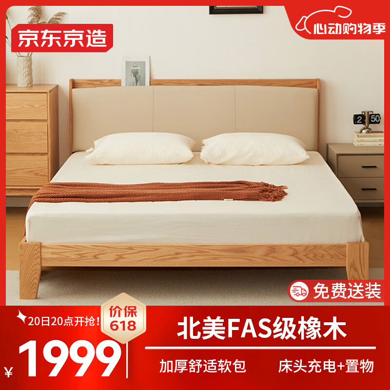 京东京造实木床 FAS级橡木|软包床头|大板厚材 主卧双人床1.8×2米BW05价格:2199.00元!