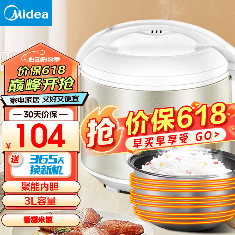 美的(Midea) 电饭煲 精铸发热盘大容量简单易控 黑晶内胆家用迷你小电饭锅 3升黑晶内胆MB-WYJ301 (2-6人) 3L价格:169.00元!