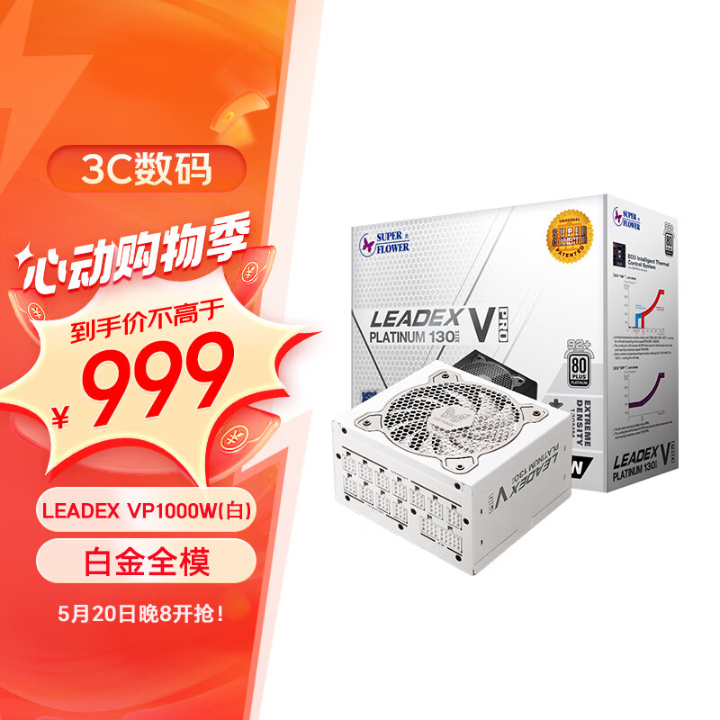 SUPER FLOWER振华 额定1000W LEADEX VP1000W 白色电源 13cm白金牌全模 标配12VHPWR线 支持4090显卡 十年保固价格:999.00元!