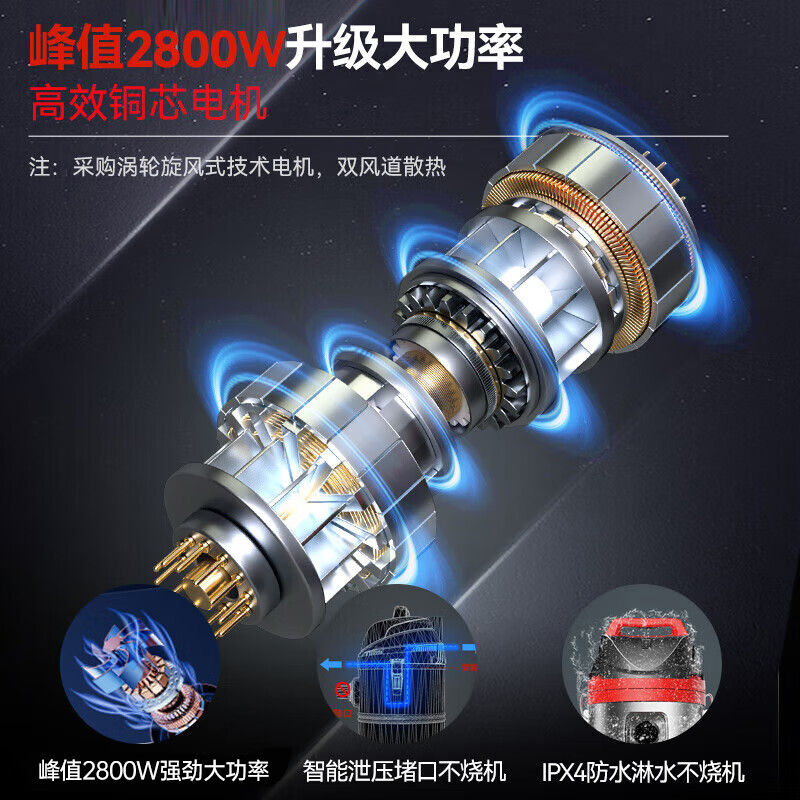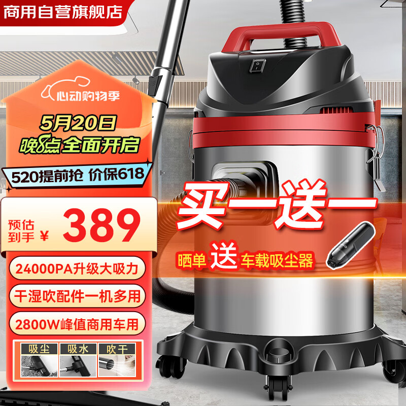 扬子(YANGZI)吸尘器家用工业2800W大功率大吸力商用车用装修开荒美缝干湿吹多用25升桶式车载吸尘机价格:389.00元!
