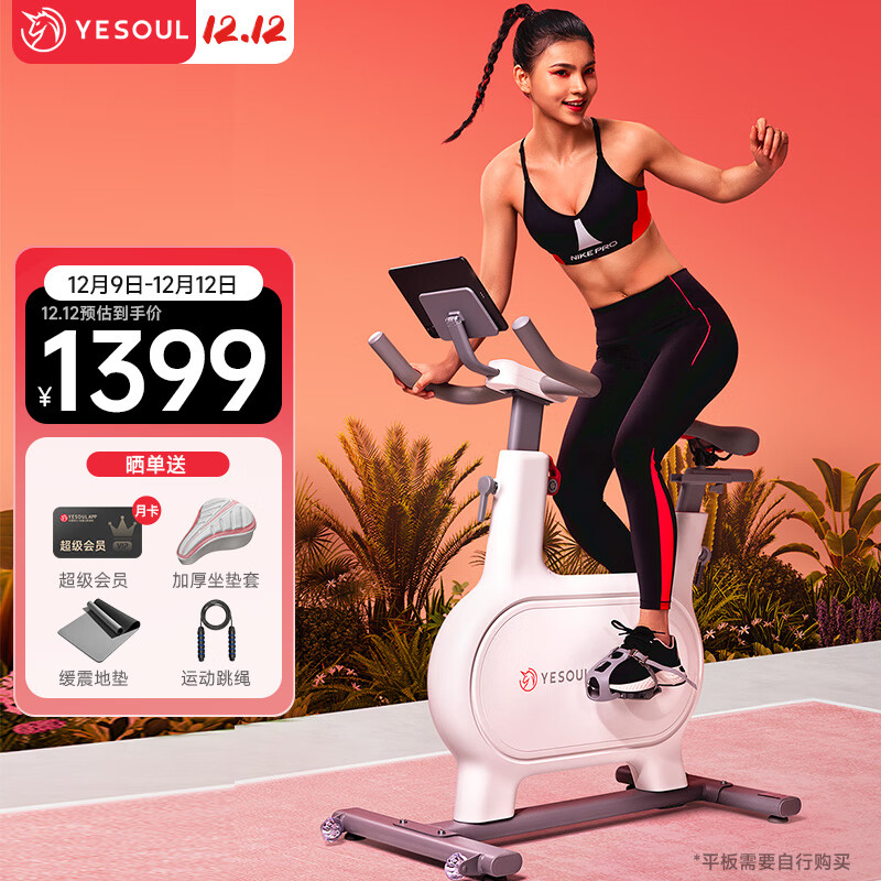 YESOUL野小兽 M2M 动感单车自发电升级智能旋钮家用磁控智能调阻室内健身车价格:1599.00元!