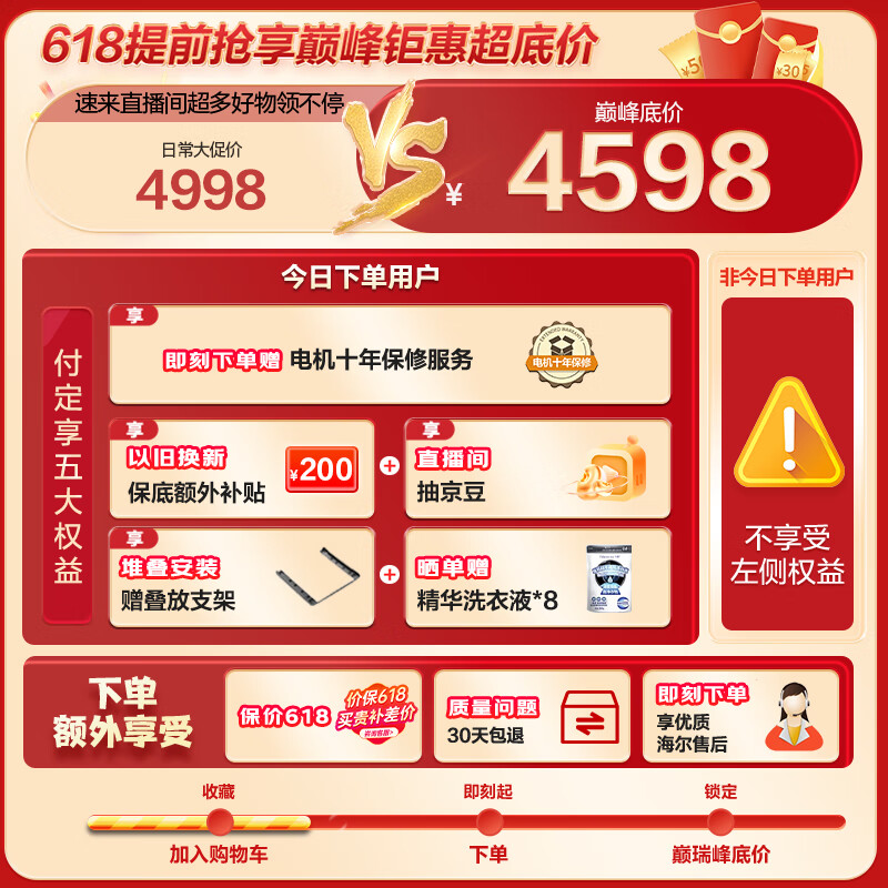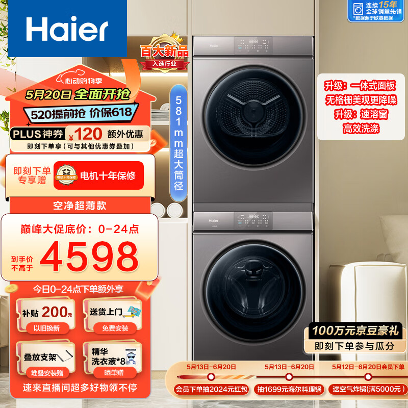海尔(Haier)超薄全嵌洗烘套装 10KG滚筒洗衣机全自动+热泵烘干机家用 速溶窗高效洗涤 MATE36+36S 以旧换新价格:4598.00元!