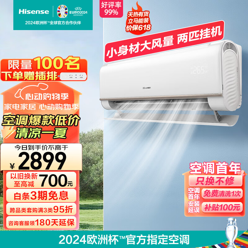 海信(Hisense)2匹 三级能效 大风量速冷暖 APP智能变频防直吹两匹壁挂式客厅空调挂机 KFR-50GW/E360-X3价格:2899.00元!