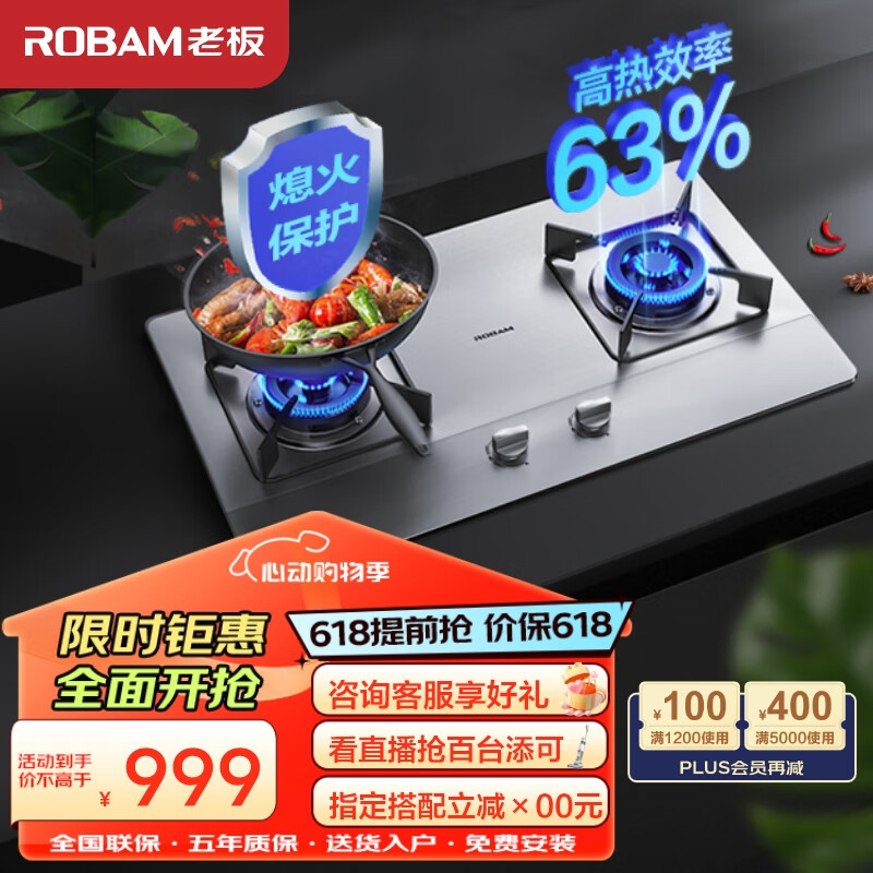 老板燃气灶天然气灶双灶 家用嵌入式不锈钢燃气灶具 4.2kW聚能猛火台嵌两用灶台 换灶选老板JZT-30G2价格:999.00元!