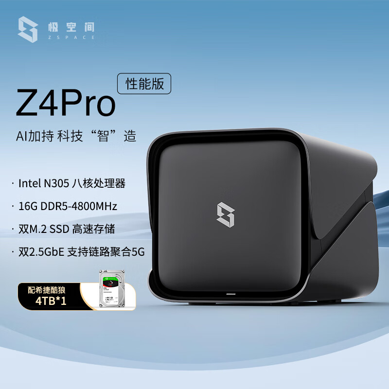 极空间私有云Z4Pro 性能版 8核16G内存 四盘位Nas网络存储服务器家庭个人云【配4T希捷酷狼硬盘】钛金灰价格:4599.00元!