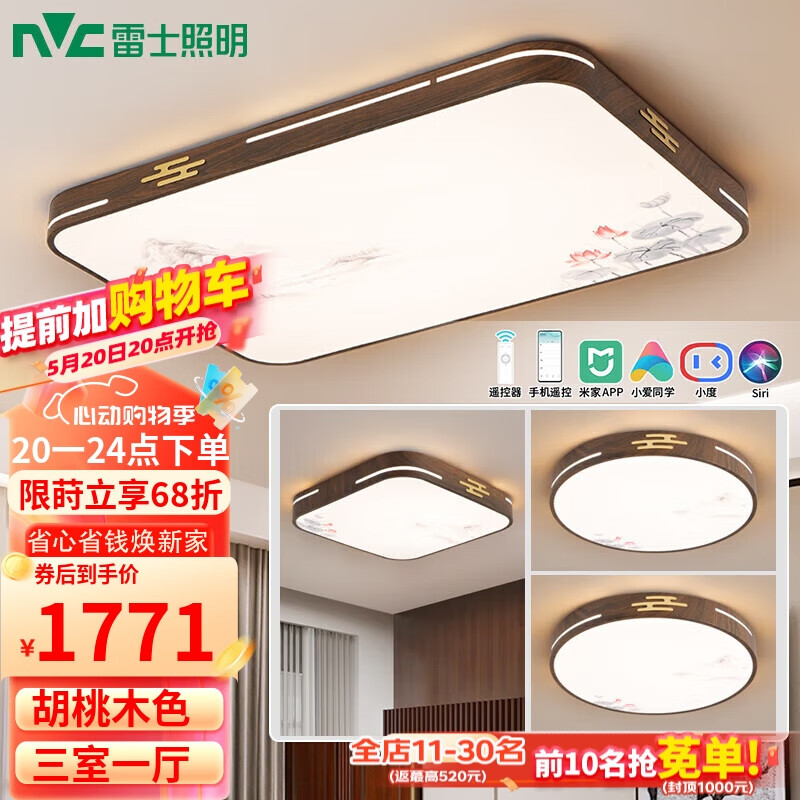 雷士照明(NVC)LED吸顶灯客厅餐厅卧室灯铁艺复古灯具新中式智能典雅大气灯饰三室一厅套餐WHXD108W/F-04价格:2898.00元!