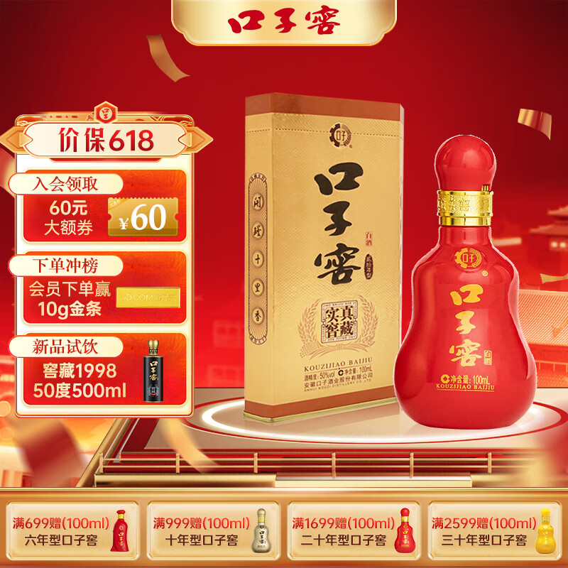 口子窖 二十年型 兼香型白酒 50度 100ml 纯粮酿造价格:112.00元!