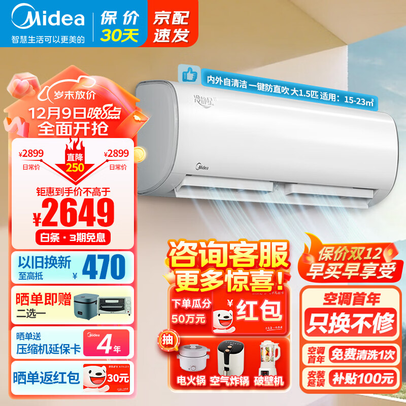 美的(Midea)空调挂机 冷静星二代 全直流变频 新一级能效 卧室壁挂式 四代自清洁KFR-35GW/BDN8Y-PH200(1)A价格:2699.00元!