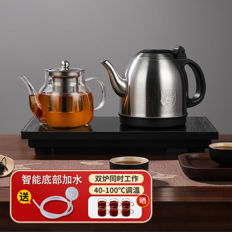FUNORK全自动上水电热烧水壶煮泡茶专用茶台一体机茶几茶桌嵌入式抽水茶具套装电茶炉烧水器 黑色保温款(37x20cm)价格:189.00元!