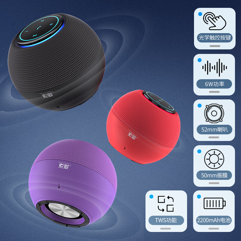 索爱(soaiy)S65M音箱全屏炫彩电脑喇叭低音炮家用车载迷你便携式小音响长续航收款插卡播放器 朱砂红价格:129.00元!