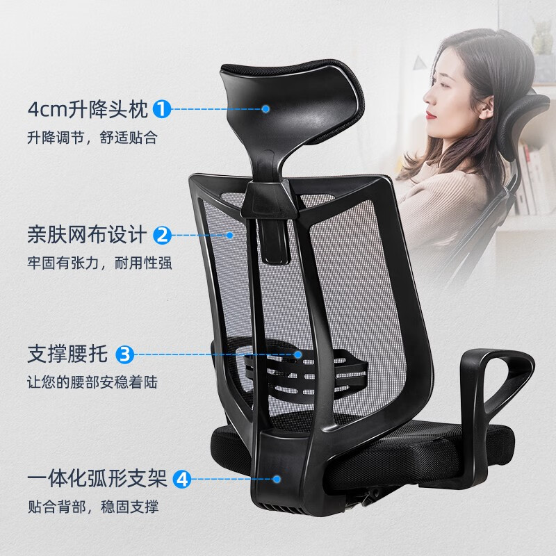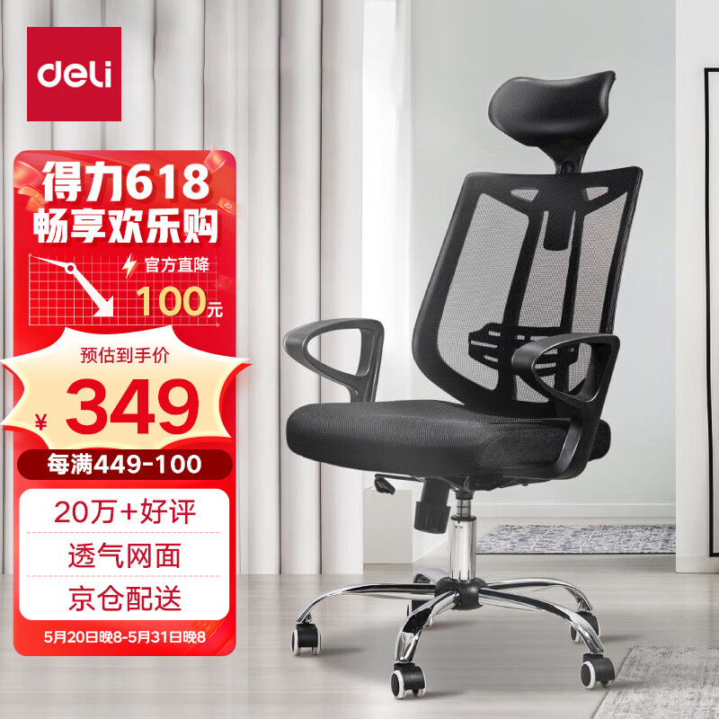 得力(deli)4905 人体工学电脑椅 头枕可调办公椅 仿生靠背125°后仰价格:449.00元!