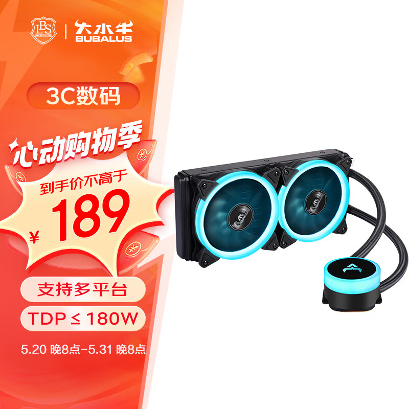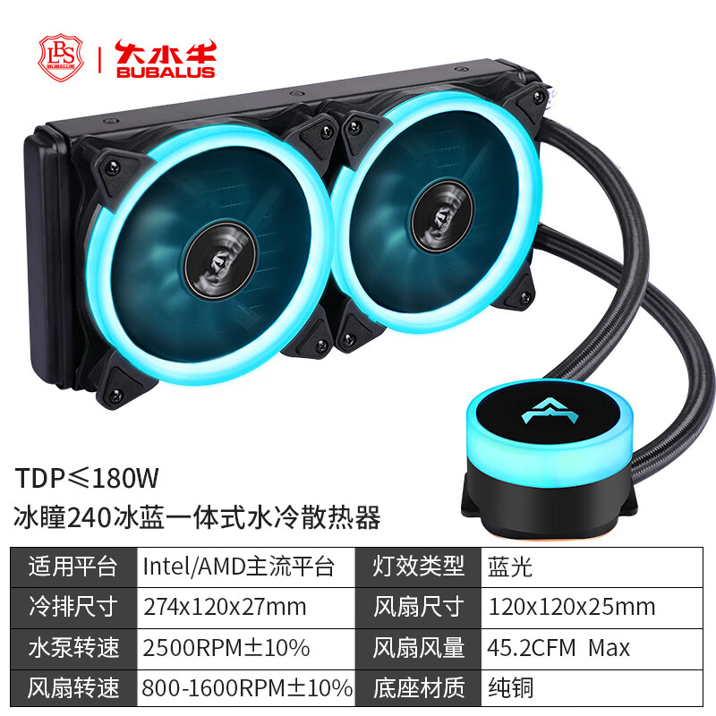 大水牛(BUBALUS)冰瞳240 冰蓝 一体式CPU水冷散热器(240水冷排/多平台/支持Intel/AM4/PWM智能温控风扇)价格:184.20元!