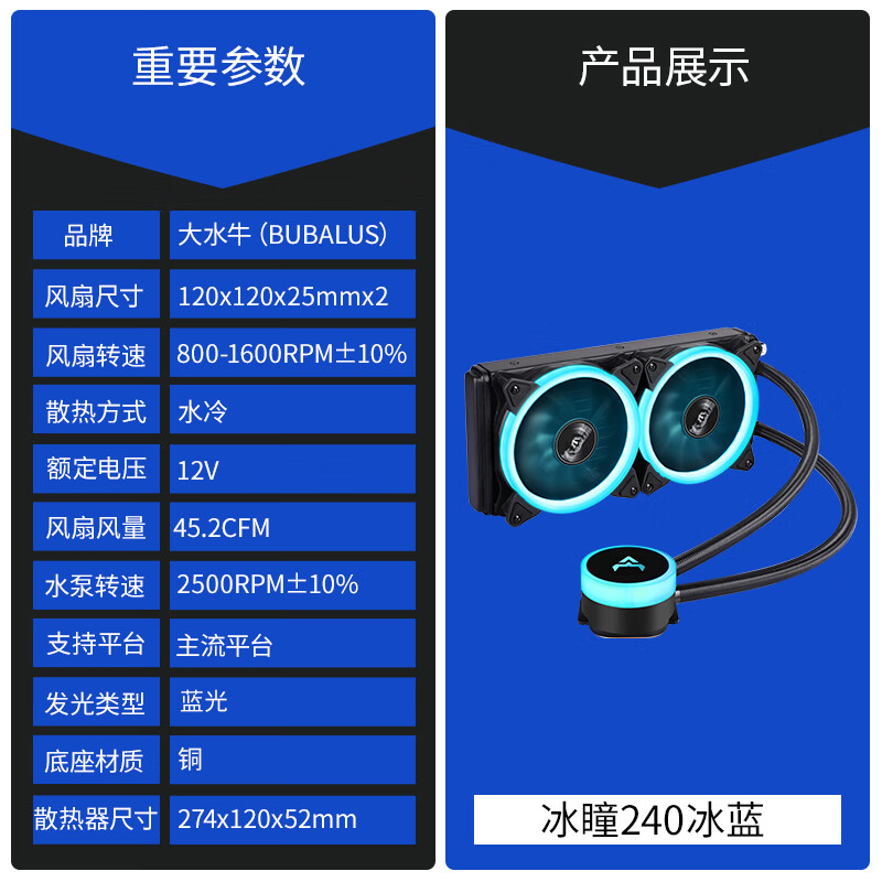 大水牛冰瞳240 冰蓝配置参数: