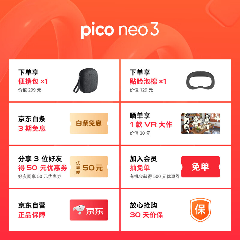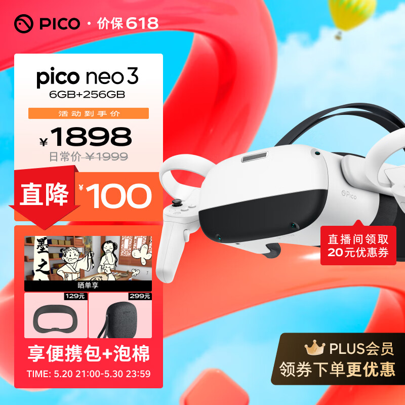 PICO抖音集团旗下XR品牌PICO Neo3 VR 一体机6+256G VR眼镜MR体感游戏机visionpro设备AR观影价格:1898.00元!