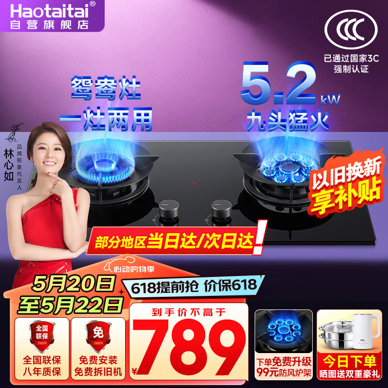 Haotaitai 家庭好用燃气灶大火力灶具5.2KW天然气台嵌入式九腔孔猛火太太燃气灶具煤气灶双灶2199B-S天然气价格:889.00元!