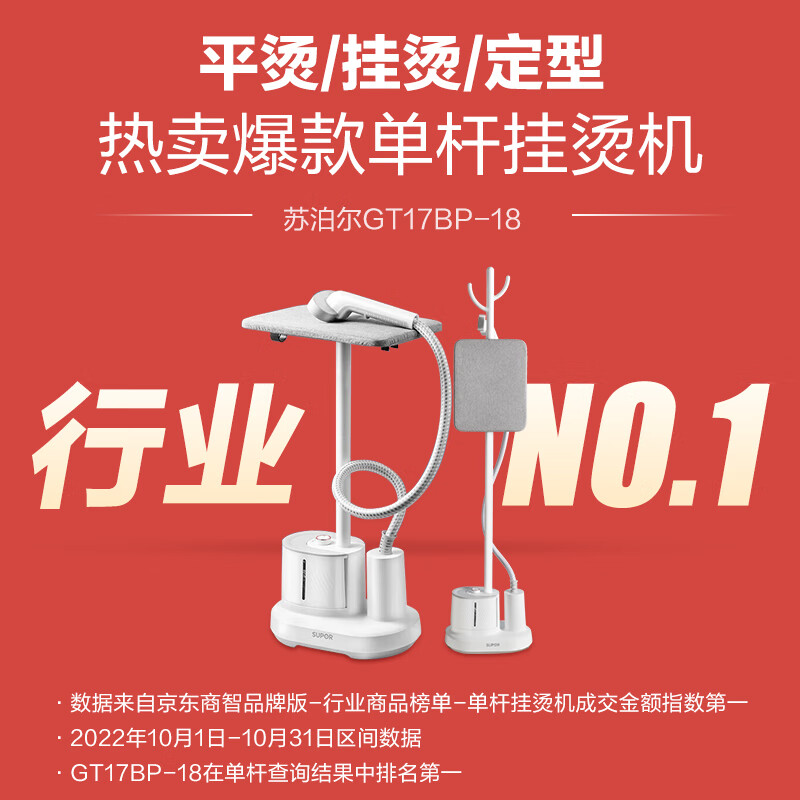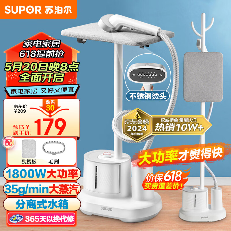 苏泊尔(SUPOR)【蝉联金榜】挂烫机家用1800w大功率手持蒸汽熨烫机服装店分离式水箱杀菌电熨斗带熨烫板GT17BP价格:179.00元!