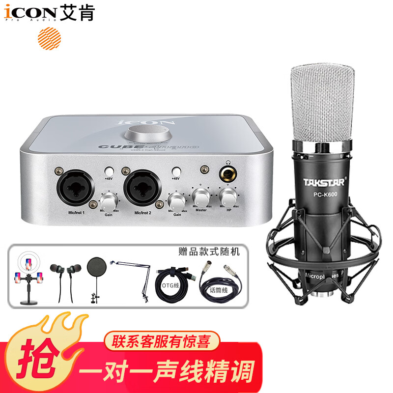 iCON艾肯4nano外置声卡+K600麦克风套装手机电脑唱歌录音主播直播设备 价格:2519.00元!