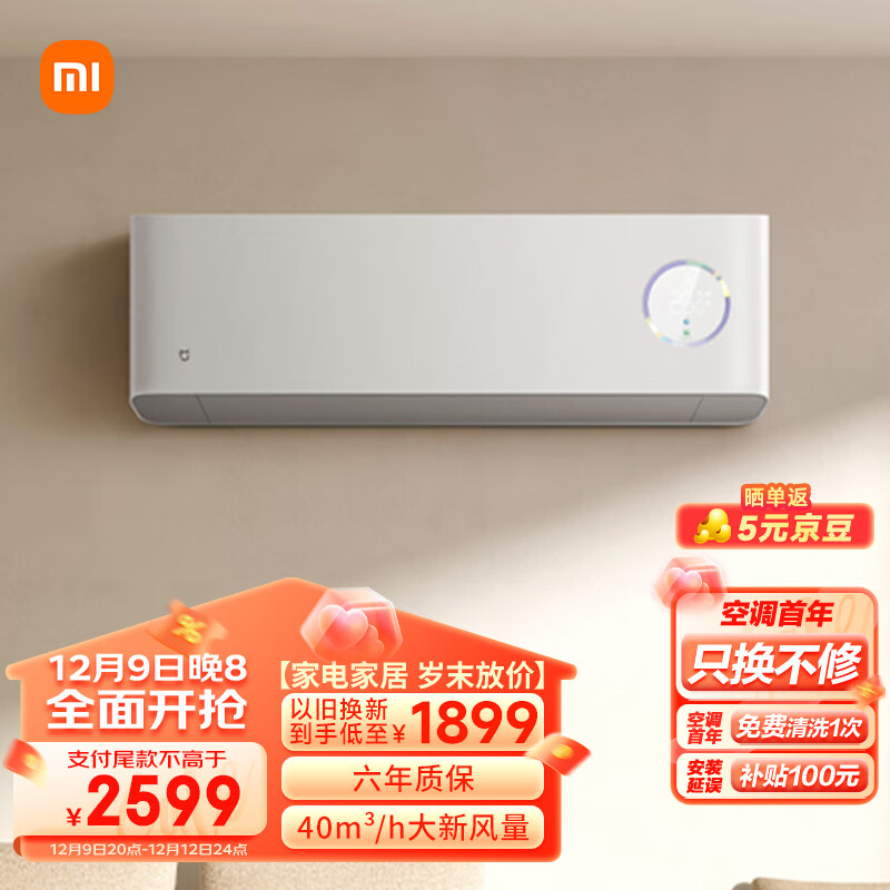 小米米家1.5匹 新风空调 新一级 变频冷暖 40m3/h新风量 壁挂式空调挂机 KFR-35GW/F3A1 以旧换新价格:2599.00元!