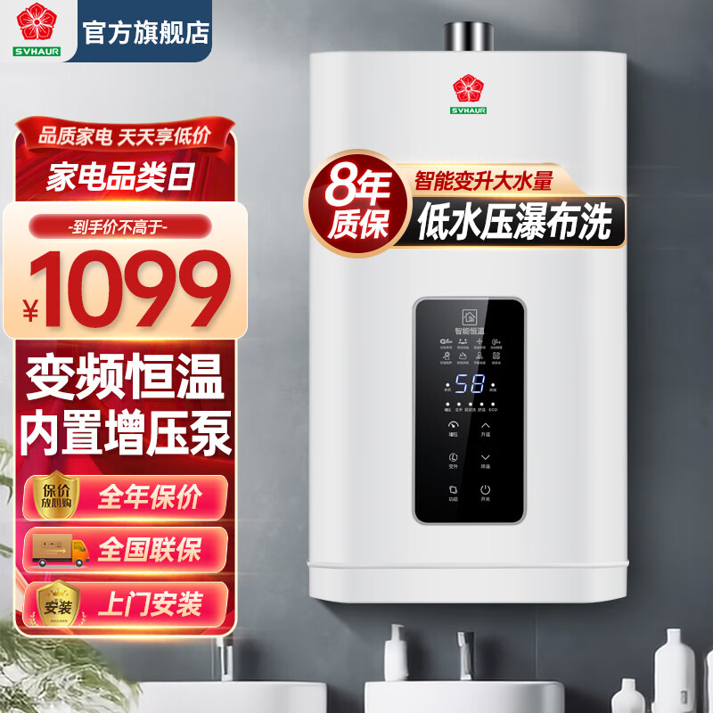 樱花雪白燃气热水器家用即热式变频增压水伺服16升智能恒温ECO节能省气厨房洗澡强排式 液化气JSQ30-16Y3价格:1099.00元!