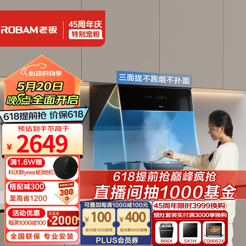 老板(Robam)油烟机28X6ST变频油烟机24风量抽油烟机【王一博同款】低噪音挥手感应智能语音控制抽油油烟机 变频24风量单油烟机 天然气探索家系列价格:2949.00元!