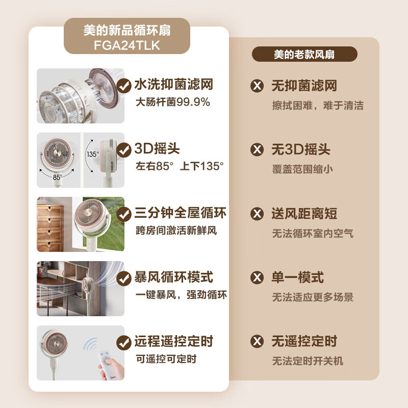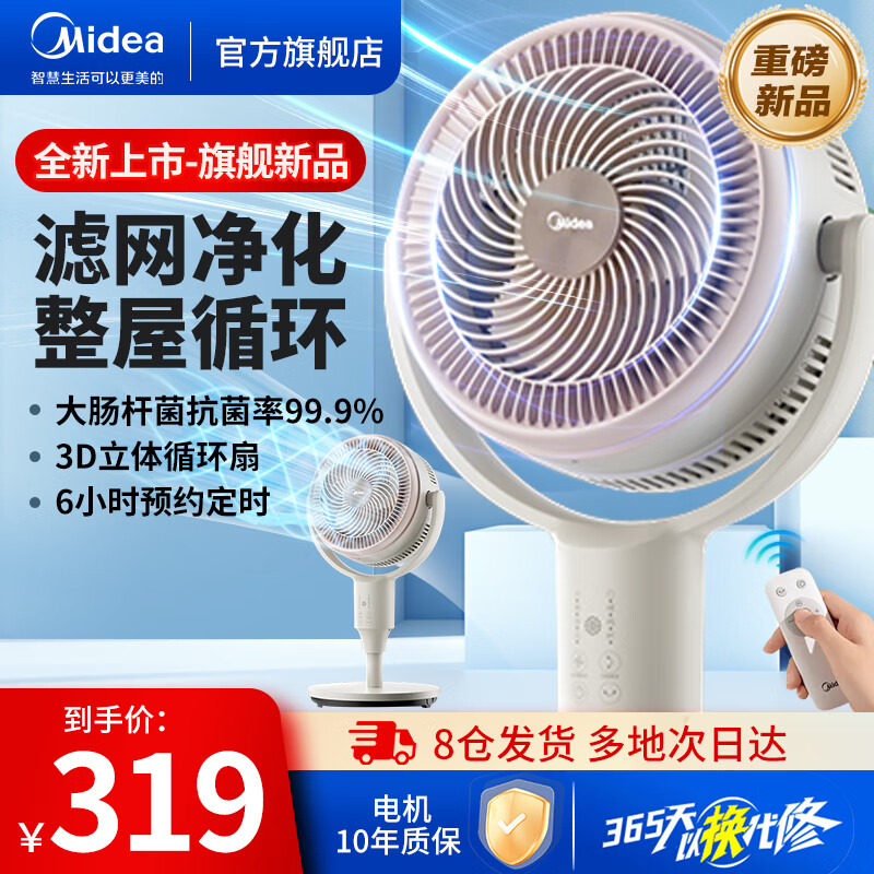 美的(Midea)电风扇家用空气循环扇落地扇轻音台立地定时3D摇头风扇客厅卧室智能遥控涡轮换气对流扇 【滤网除菌净化】-3D立体摇头-FGA24TLK价格:399.00元!