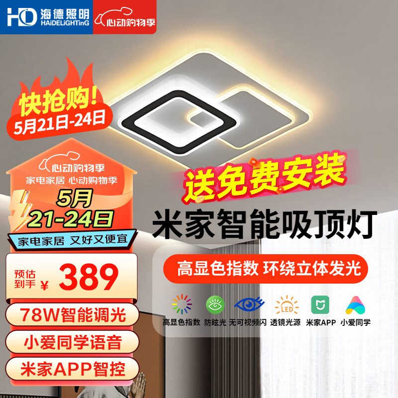 HD米家智能语音吸顶灯具 led北欧轻奢客厅卧室餐厅现代简约全屋灯饰价格:449.00元!