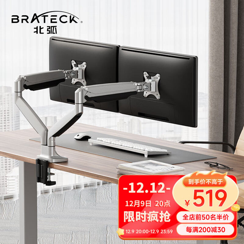 Brateck北弧 显示器支架双屏 电脑显示器支架 双屏支架臂 台式电脑支架升降 显示器增高架 桌面旋转底座LDT10价格:649.00元!
