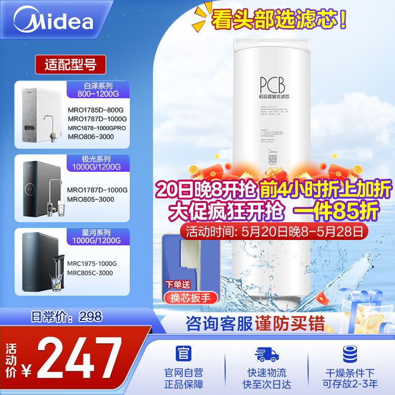 美的净水器滤芯—适用白泽800-1200G、星河/极光1000/1200G、比佛利G7/G10-Best双芯-2年PCB滤芯价格:253.00元!