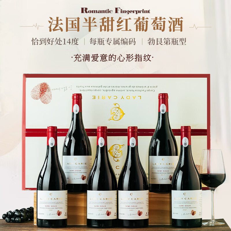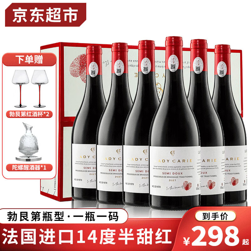 菲特瓦【一瓶一码】法国进口红酒葡萄酒750ML整箱原酒进口礼盒礼品 半甜红·6支醒酒器套装价格:408.00元!