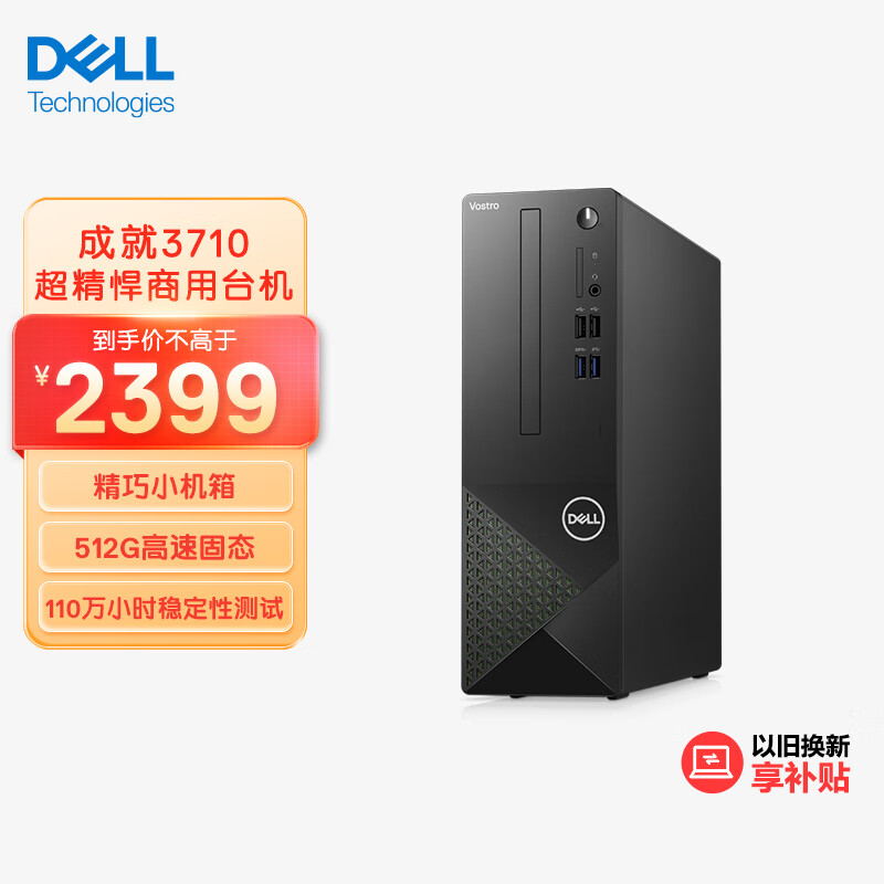 戴尔(Dell)成就3710 台式电脑主机 高性能整机 台式机(12代i3-12100 8G 512GSSD WiFi Win11三年上门)单主机价格:2399.00元!