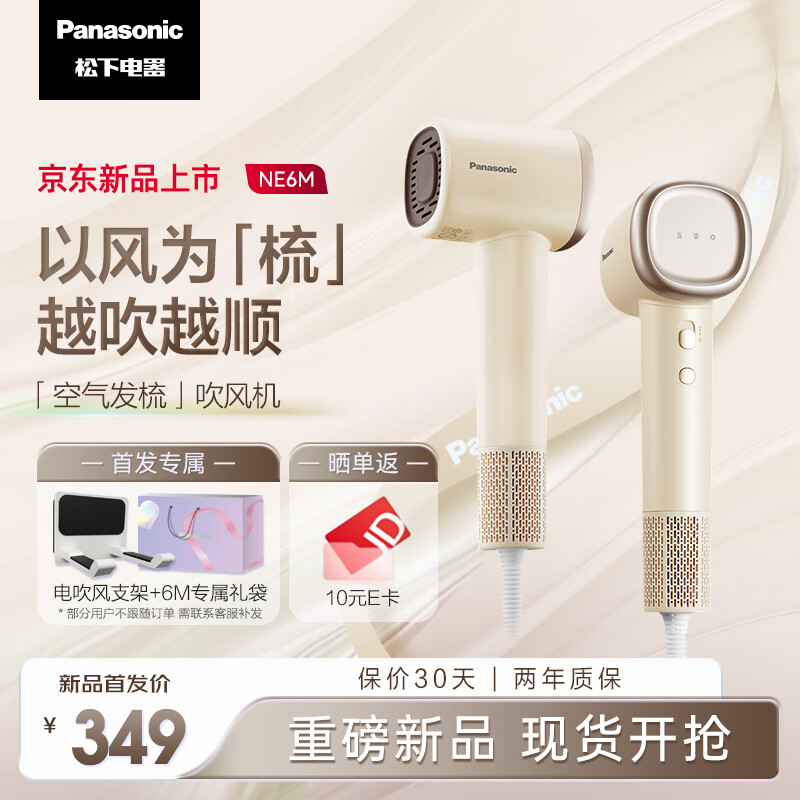 松下(Panasonic)空气发梳吹风机 高速负离子吹风筒 负离子水润护发 大功率速干不伤头发 家用送男女朋友礼物WNE6M 米白色(奶茶色) 礼盒装价格:349.00元!