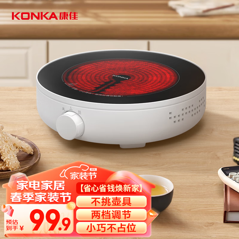 康佳(KONKA)电陶炉 家用电陶茶炉迷你煮茶炉小型养生电茶炉不挑壶泡茶煮茶器 KES-W08JX516价格:99.90元!