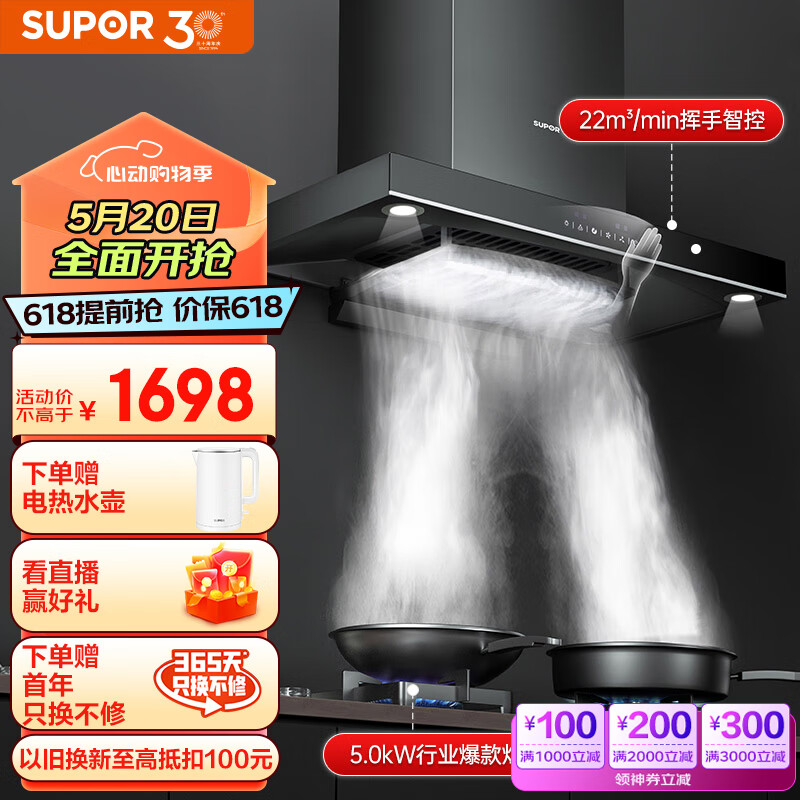 苏泊尔(SUPOR) 抽油烟机 烟灶套装22立方家用欧式吸油烟机燃气灶具套装挥手智控 自清洁 DT32+Q5天价格:1848.00元!