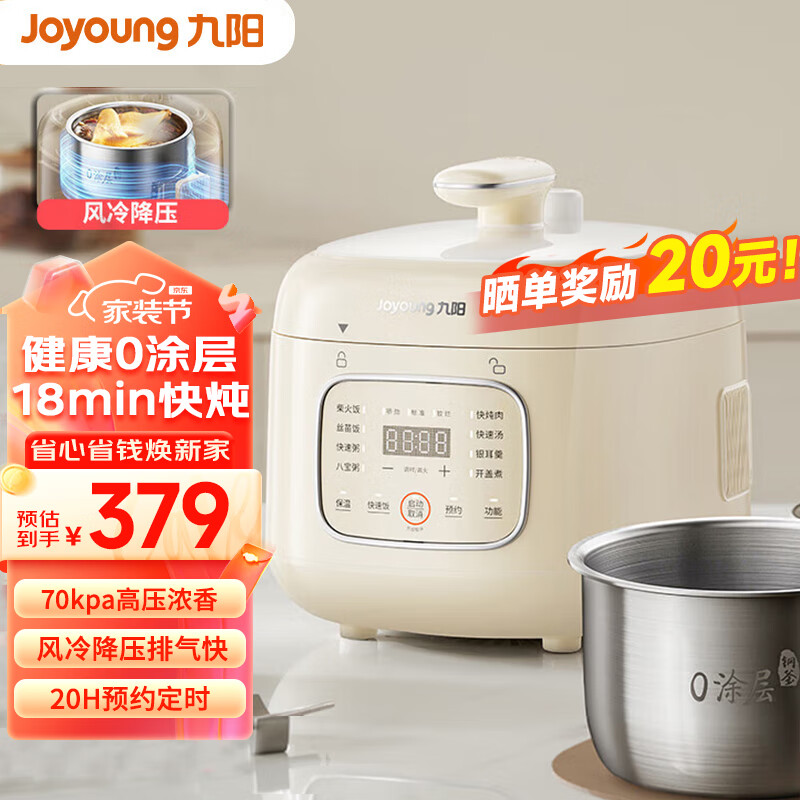 九阳(Joyoung)无涂层电锅精致小容量小型家用3-4人电煲电饭煲一键排气多功能智能菜单30NS1 【健康0涂层】30NS1奶油白 3L价格:499.00元!