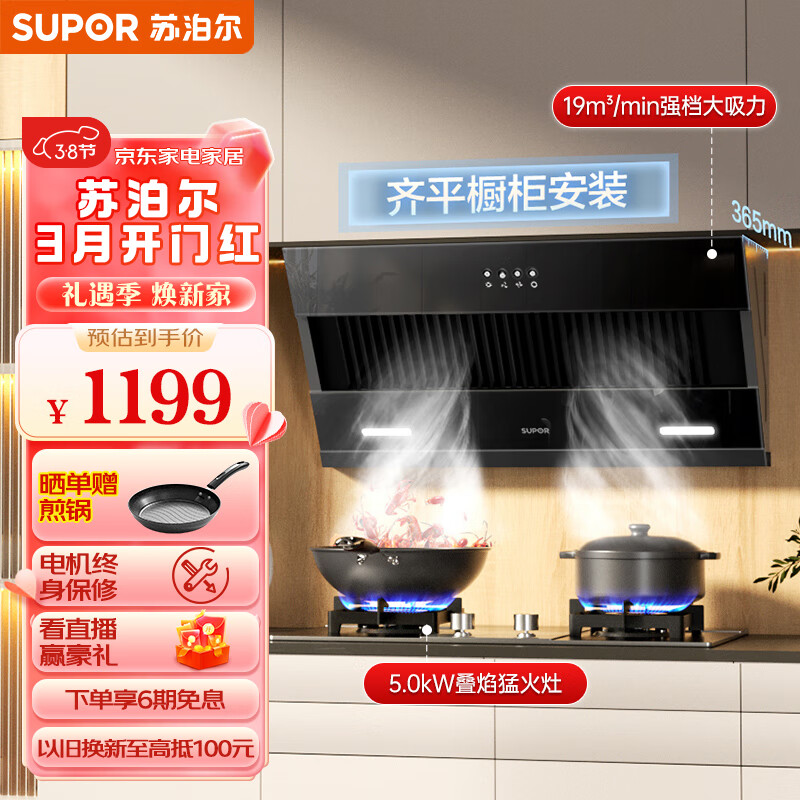 苏泊尔(SUPOR)抽油烟机燃气灶套装 家用小尺寸大吸力 19立方侧吸式小户型烟灶套装DJ13S+S16液化气价格:1199.00元!