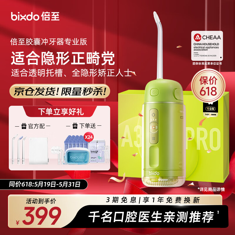 倍至(bixdo)冲牙器胶囊三代洗牙器水牙线美牙仪预防牙结石正畸适用伸缩便携儿童洁牙器情人节送男女朋友礼物价格:478.00元!