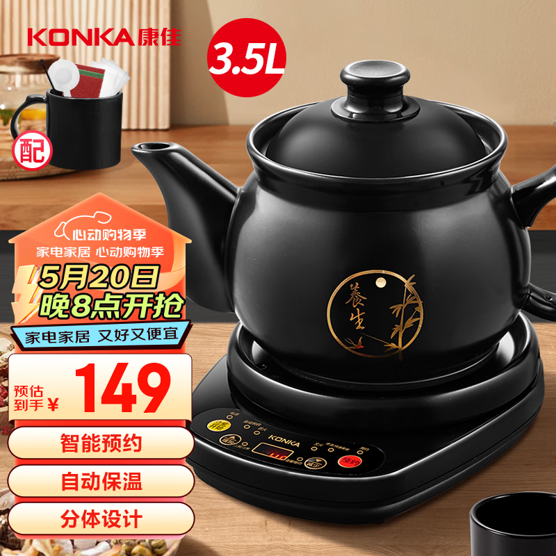 康佳(KONKA)煎药壶 中药壶 中药锅 熬药电砂锅 中药煲3.5升大容量分体式陶瓷全自动智能家用 KJYH-WHG602价格:149.00元!
