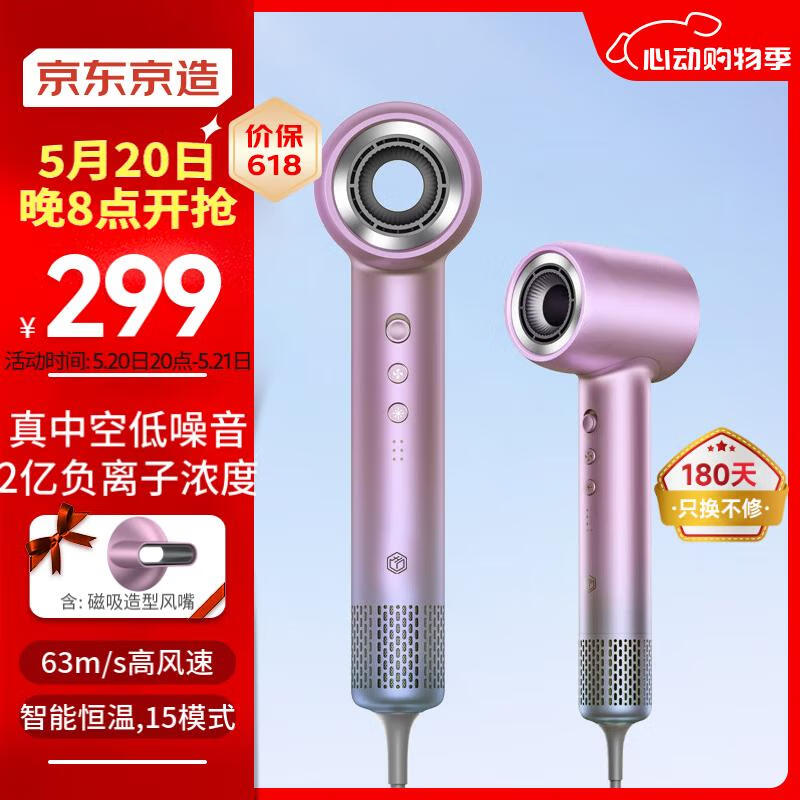 京东京造 奈丝·智能高速吹风机套装 负离子家用电吹风机大功率电吹风筒速干无叶 520情人节礼物520礼物 紫价格:349.00元!